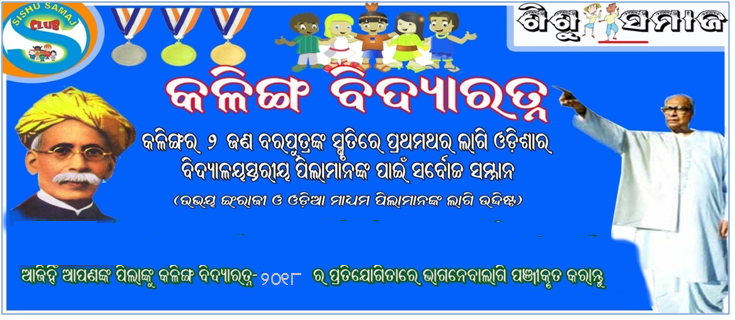 SISHU SAMAJA NEWS PAPER is Awarding MOST PRESTIGIOUS AWARD, RECOGNITION & STATE LEVEL SCHOLARSHIP namely “KALINGA BIDYA RATNA” for the little Students reading in between Class 04th to Class 10th of both ODIA & ENGLISH Medium classes of the State of Odisha. Apart from the State Level Recognition, Sishu Samaja News Paper is also giving “KALINGA BIDYA BHUSHAN” Award for District Level Winner & “KALINGA BIDYASHREE” Award for Block Level Winner. To fetch Kalinga Bidya Ratna Winner, two stage examinations are conducting by the Sishu Samaja News Paper. One is General Level Common written Examination and other is State Level Viva-voce Test. On 14th November, on the eve of CHILDREN’S DAY Evening, the Trophy & Medal of “KALINGA BIDYA RATNA” hand over to the WINNERS.